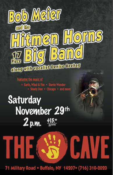 Bob Meier & The Hitmen Horns 17 Piece Big Band with Vocalist Denise Beehag – The Cave November 29 @ 2:00 pm - 5:00 pm0Comments Bob Meier & The Hitmen Horns 17 Piece Big Band with Vocalist Denise Beehag – The Cave